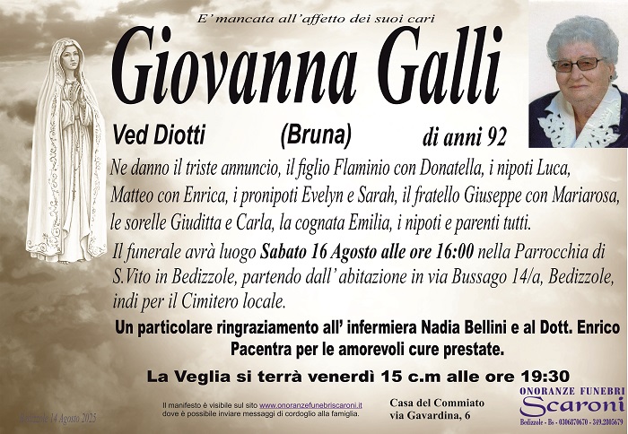 Ci stringiamo attorno alla famiglia Diotti per la perdita della loro amata Bruna, vi giungano le nostre più sentite condoglianze.